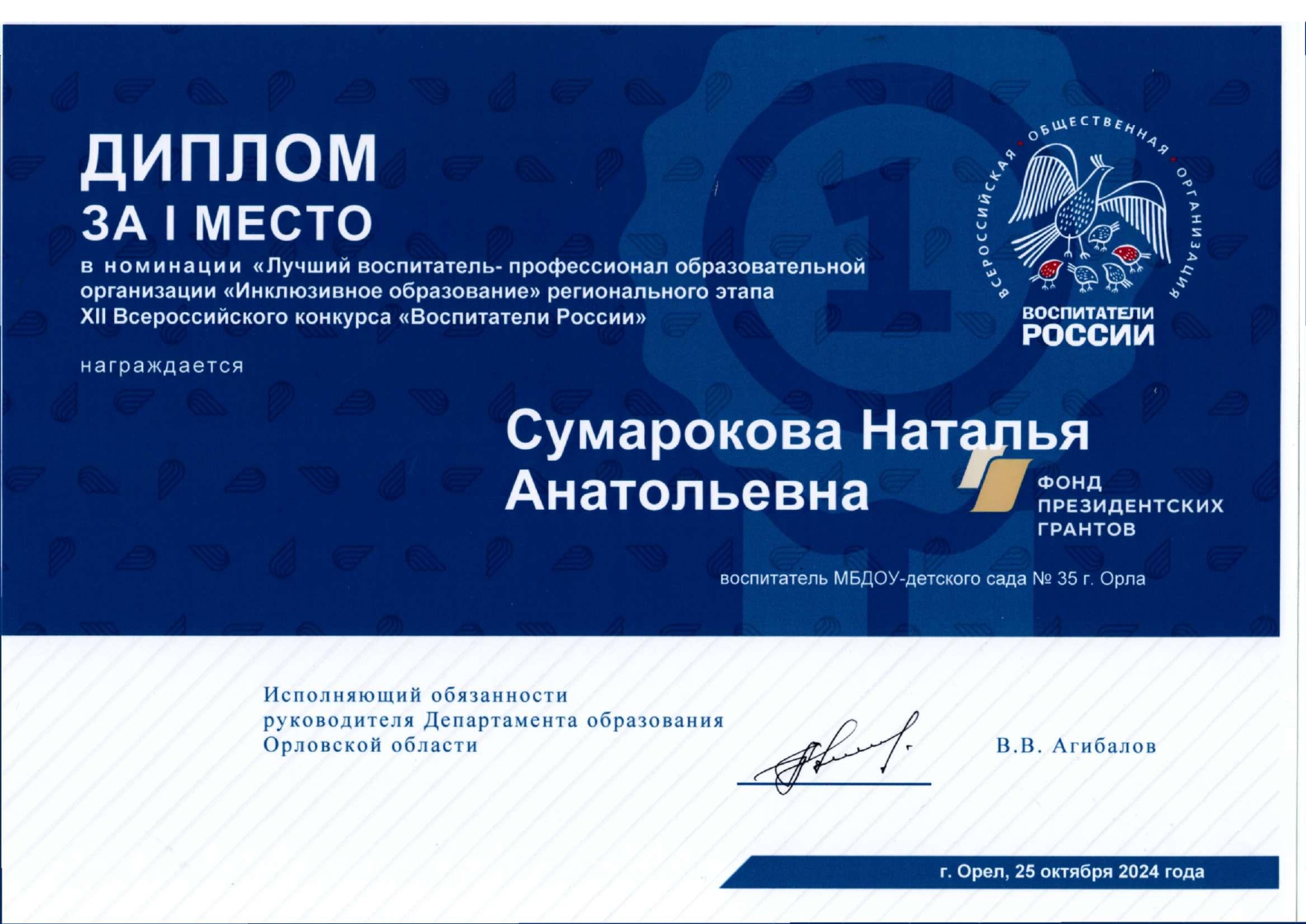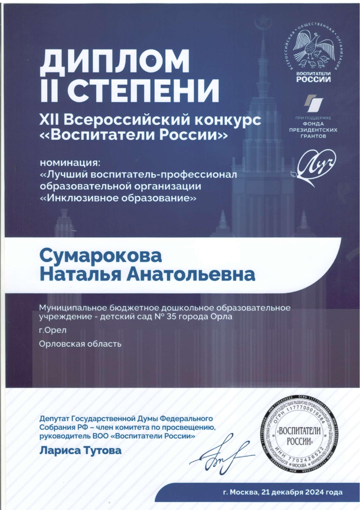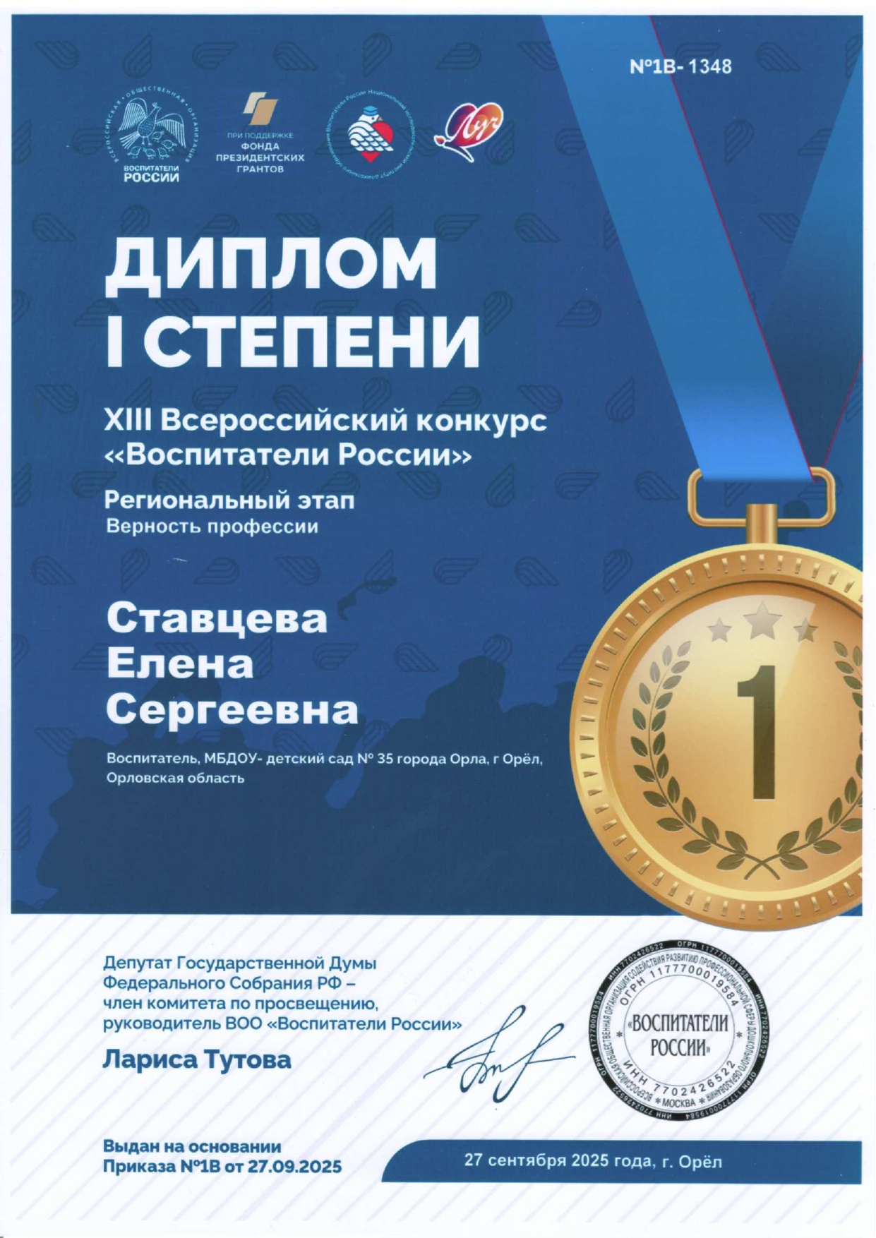 Материалы XIII Всероссийскjого конкурса «Воспитатели России», номинация "Верность профессии"