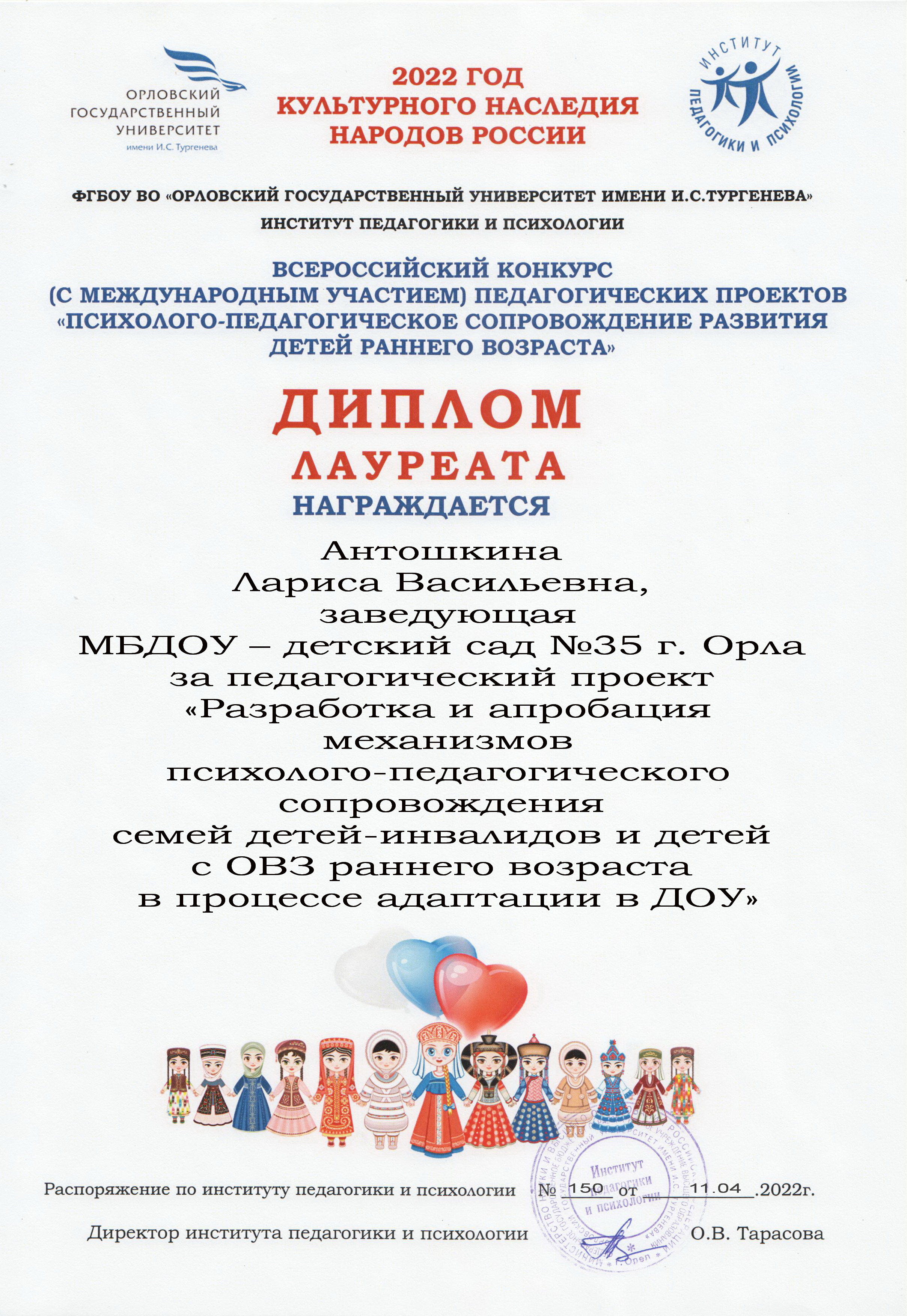 Опыт был накоплен в рамках РИП "Реализация концепции развития ранней помощи детям- инвалидам, детям с ОВЗ", направление деятельности "Разработка и апробация механизмов психолого- педагогического сопровождения семей детей- инвалидов и детей с ОВЗ раннего возраста в процессе адаптации в ДОУ"